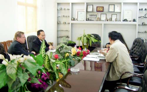 2007年12月1日芬蘭客戶來公司考察,洽談轉(zhuǎn)盤軸承項(xiàng)目。